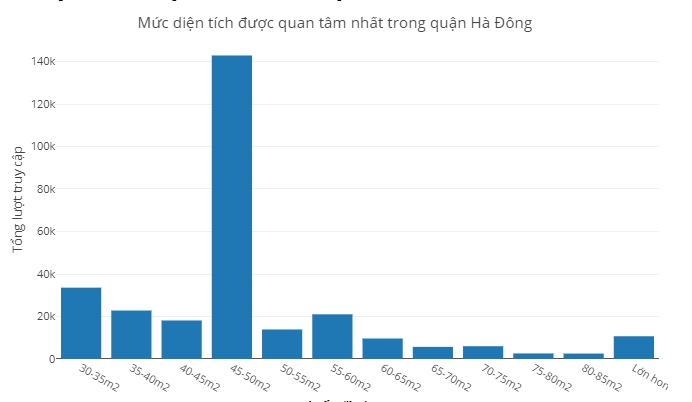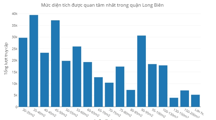 Ngược lại với quận Hà Đông (các khu đất có diện tích nhỏ được tìm kiếm nhiều nhất), tại Long Biên, người dùng hướng sự tập trung vào những khu đất có diện tích lớn diện tích từ 90 – 95m2. Đa số những khu đất này nằm tại phường Thạch Bàn, giá đất trung bình khoảng 50 triệu đồng/m2.